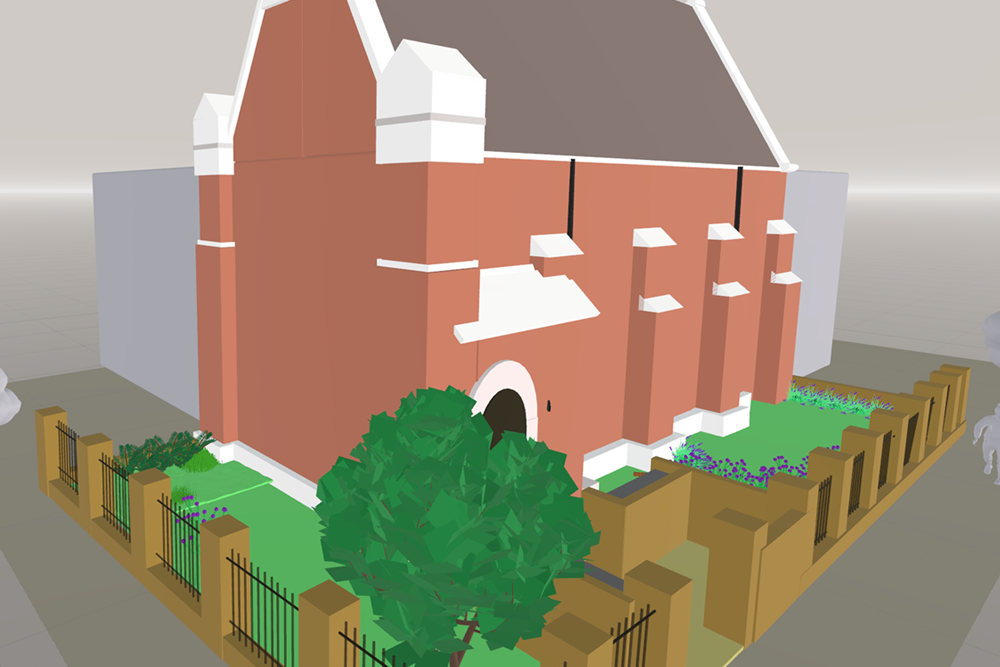 I then recreated the areas (and building) in ShapesXR (its digital twin). I first looked at SketchFeb for any 3D plants / trees as that we could easily imported into ShapesXR, however I either couldn’t find the plants I was looking for or the file size was too big to use, as the plants needed to be repeated adding to the overall file size.