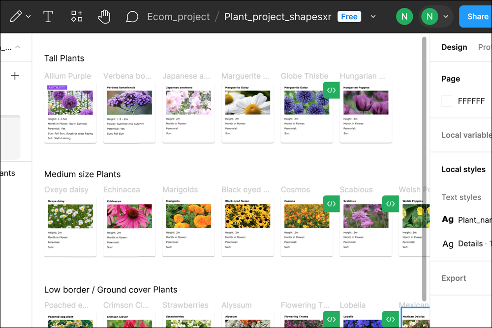 I used Figma to design the panels with all the details of each plant as so we could discuss and have the information at hand. Shapes XR make it easy for Figma files to be imported.